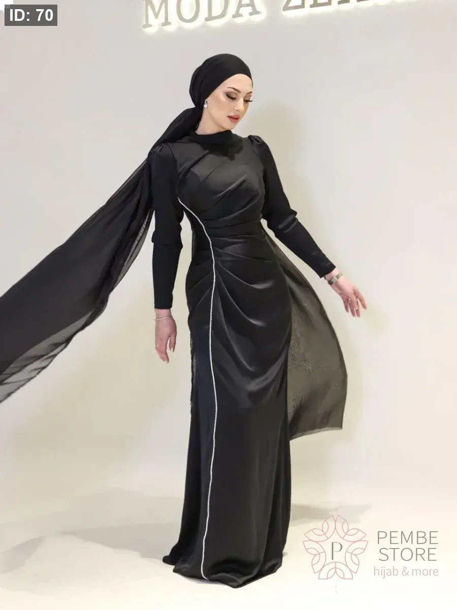 - فستان ناعم مميز بخط سترس على طول الفستان من الجانب